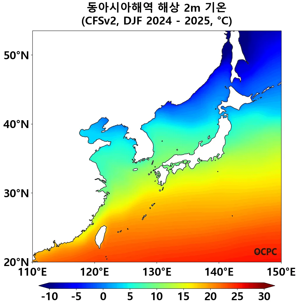 A. 동아시아해역 해상기온 전망(2024년 12월~2025년 2월 평균)