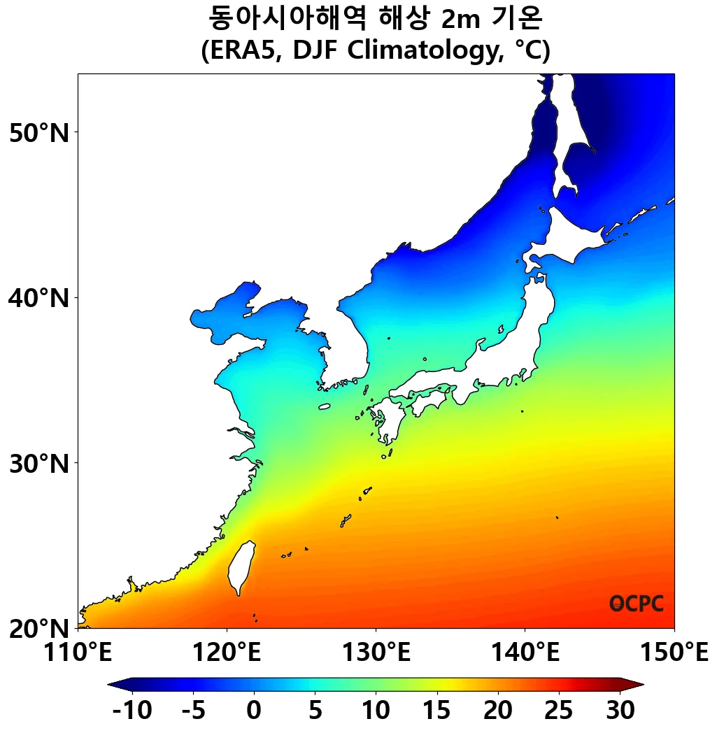 B. 동아시아해역 해상기온(평년 12월~2월 평균)