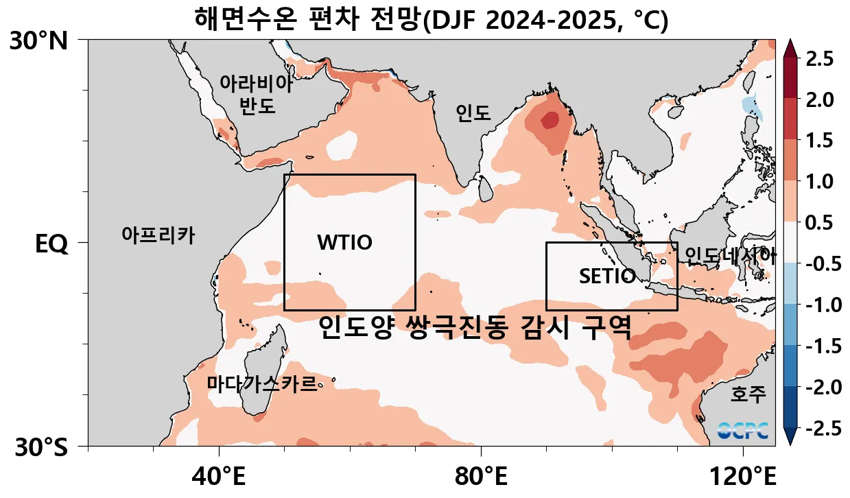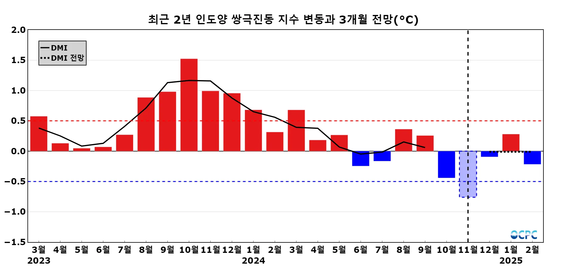 2024년 12월~2025년 2월(DJF) 인도양 쌍극진동 지수는 중립 상태일 것으로 전망됩니다.