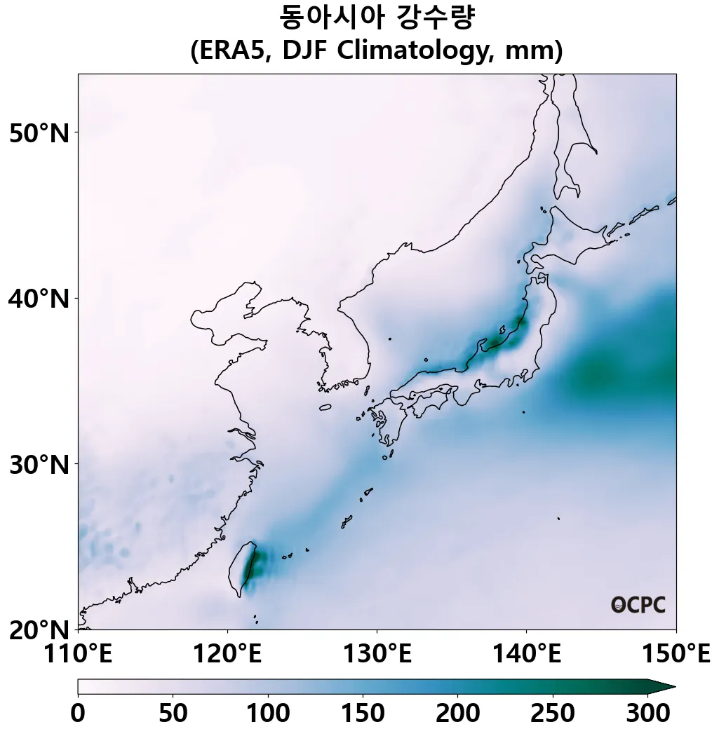 B. 동아시아 강수량(평년 12월~2월 평균)