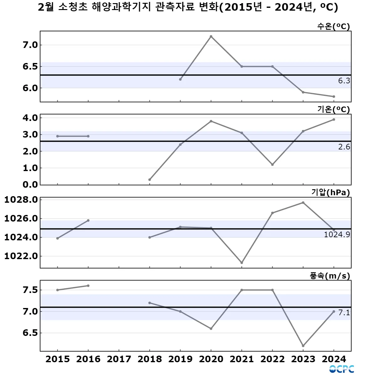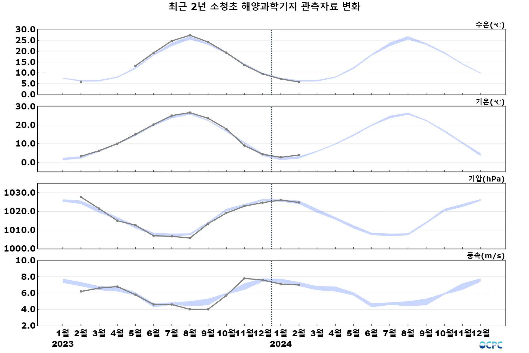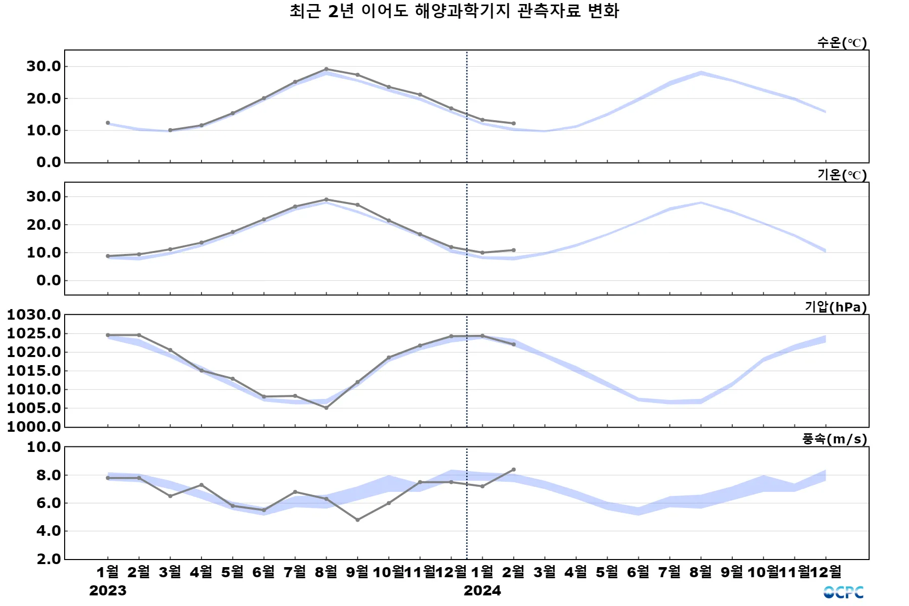 ※ 본 ‘해양과학기지 자료 분석 (2024년 2월)’은 분석은 ‘관할해역 첨단 해양과학기지 구축 및 융합연구’ 과제 및 국립해양조사원에서 제공하는 해양과학기지 관측자료를 사용하였음