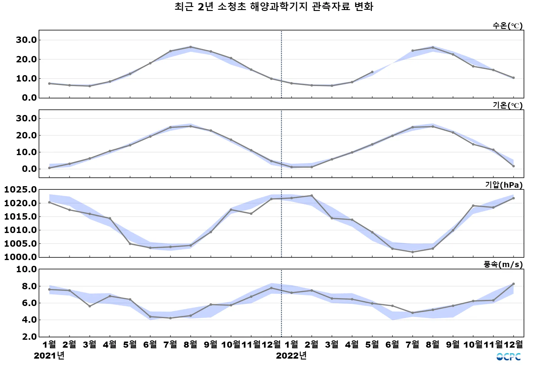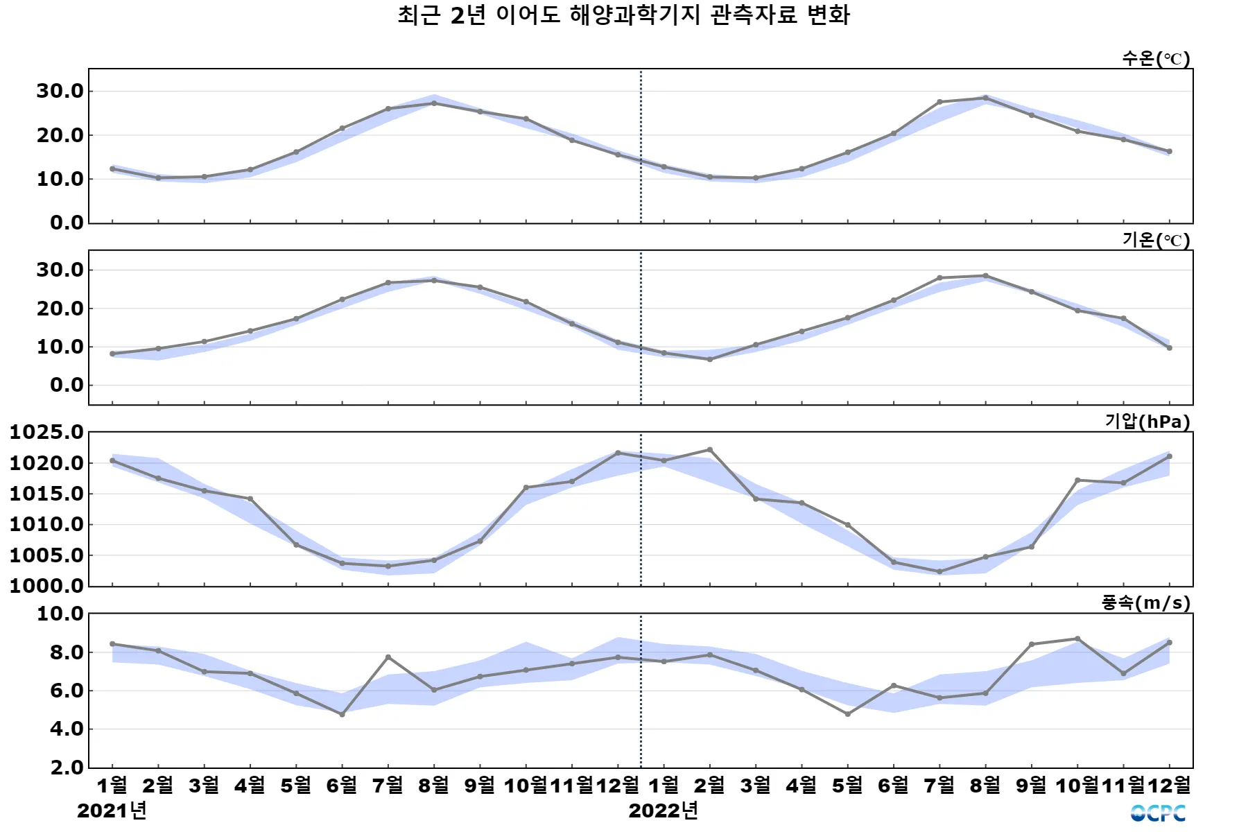 ※ 본 ‘해양과학기지 자료 분석 (2022년 12월)’은 분석은 국립해양조사원에서 제공하는 해양과학기지 관측자료를 사용하였음