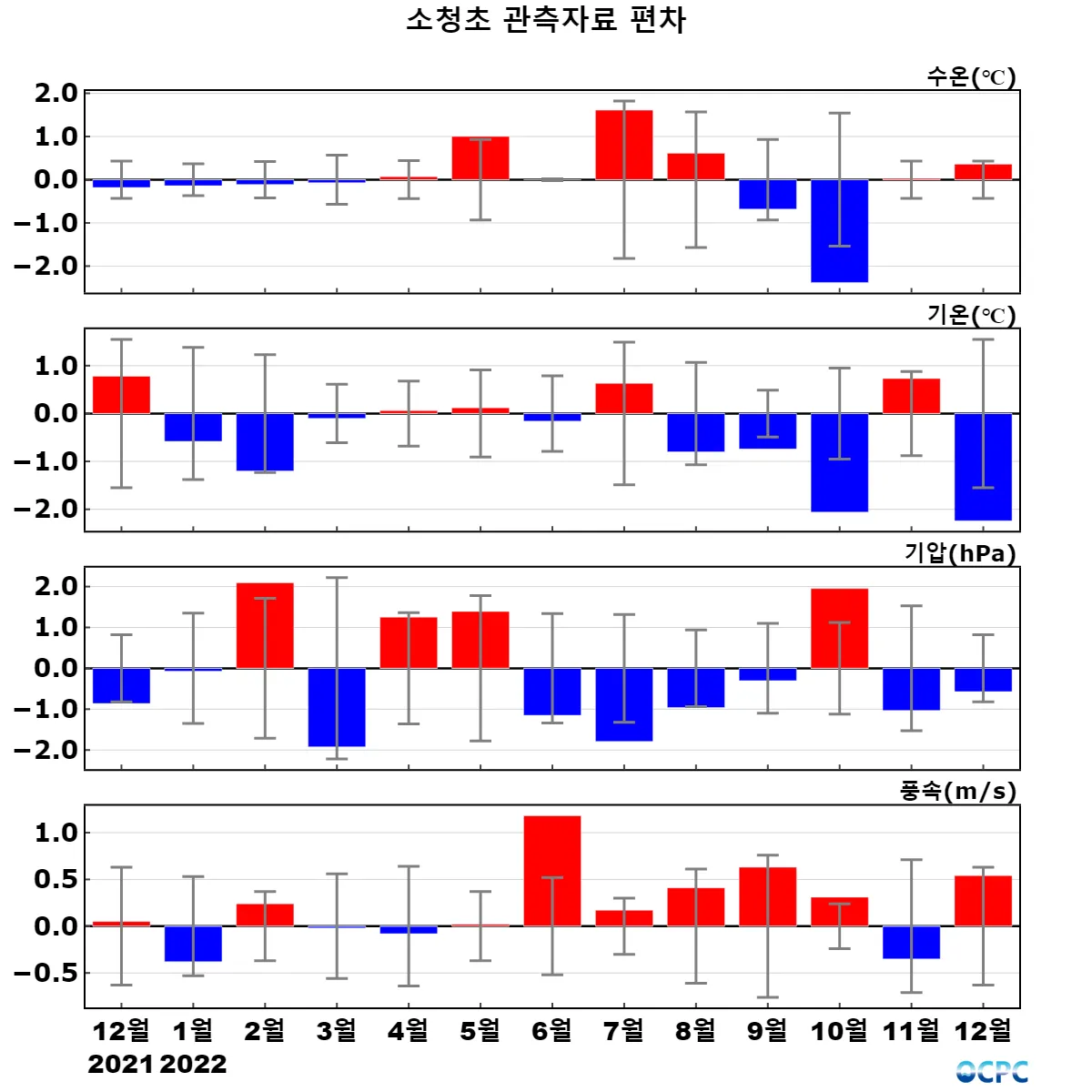 소청초 기지의 기온(1.7 ℃)은 2015~2022년(12월) 중 가장 낮았습니다.