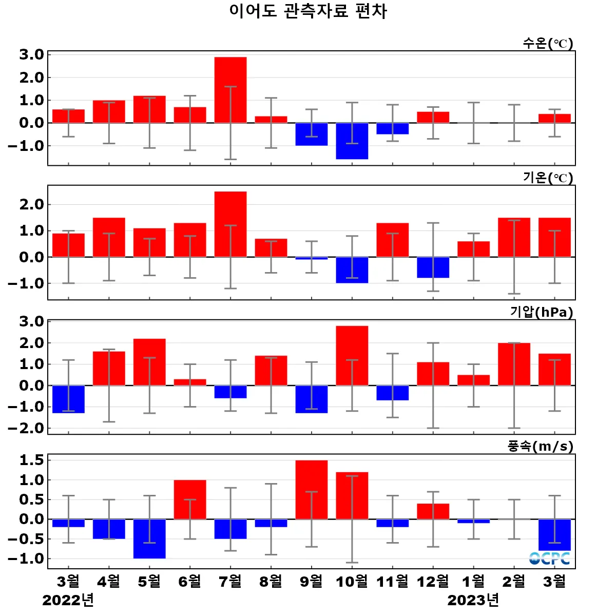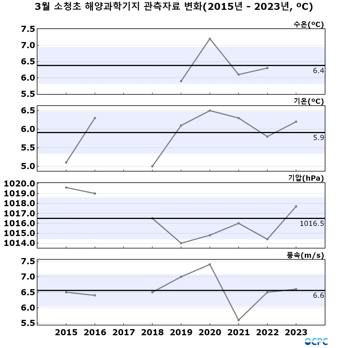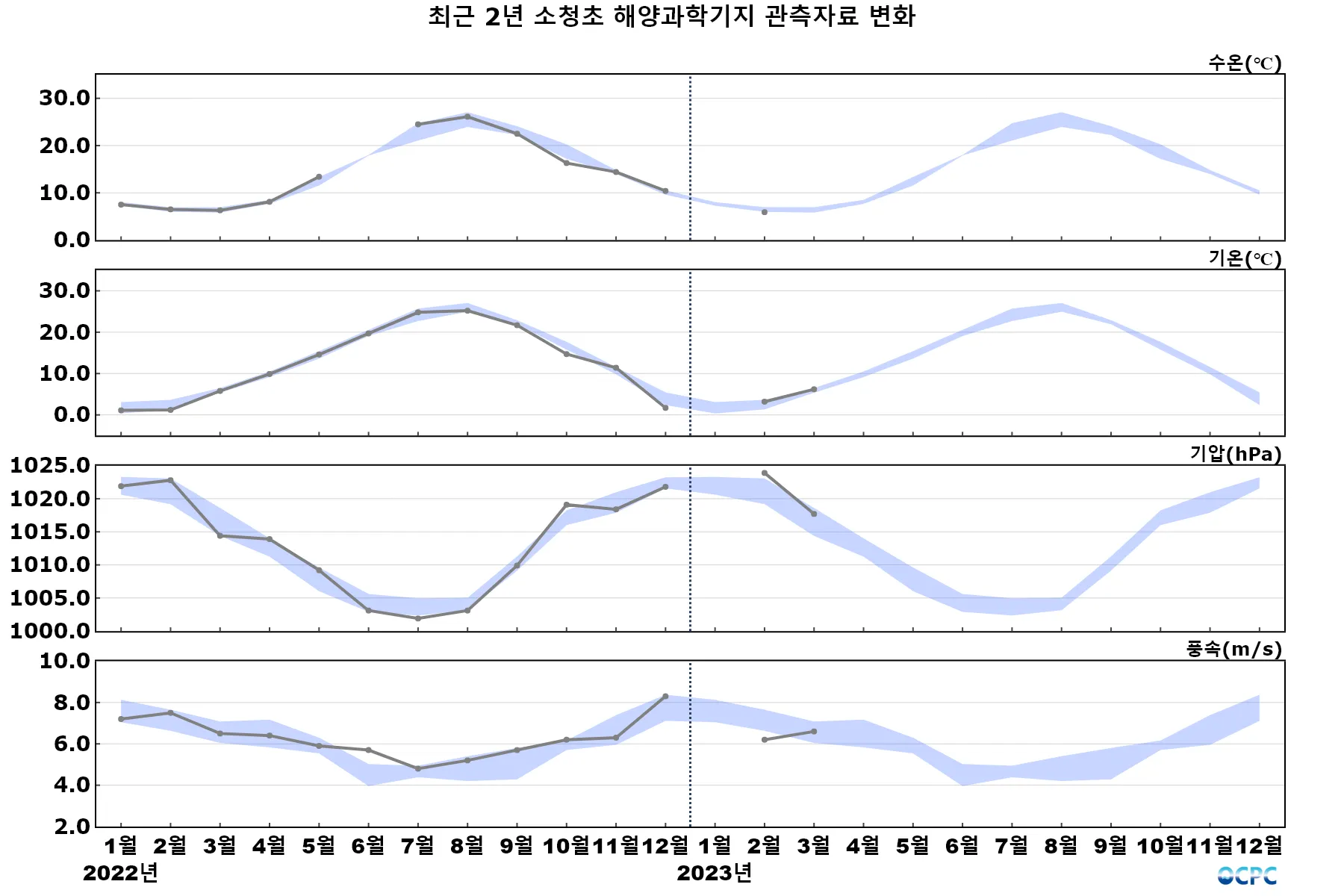 ※ 본 ‘해양과학기지 자료 분석 (2023년 3월)’은 분석은 국립해양조사원에서 제공하는 해양과학기지 관측자료를 사용하였음