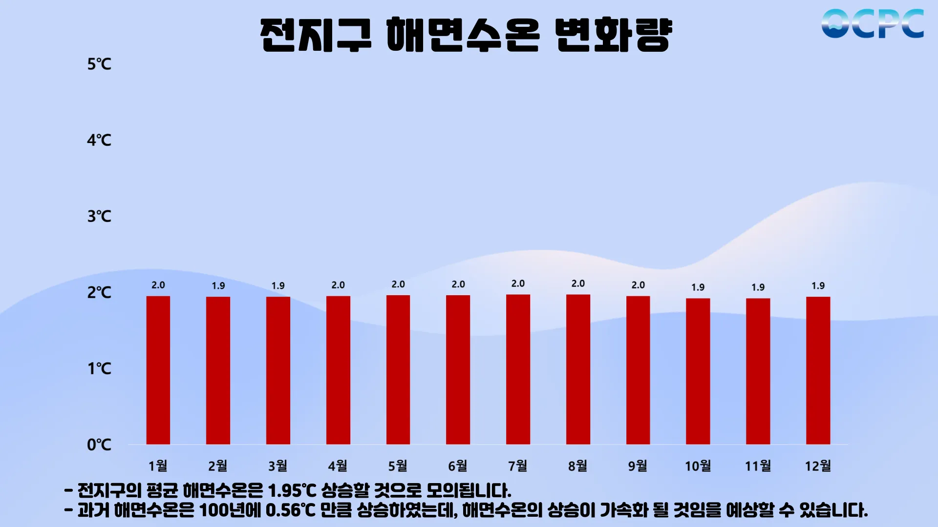 온실가스의 증가로 해면수온이 상승하고 있습니다. 해면수온은 수심 1m이내의 수온을 말합니다.