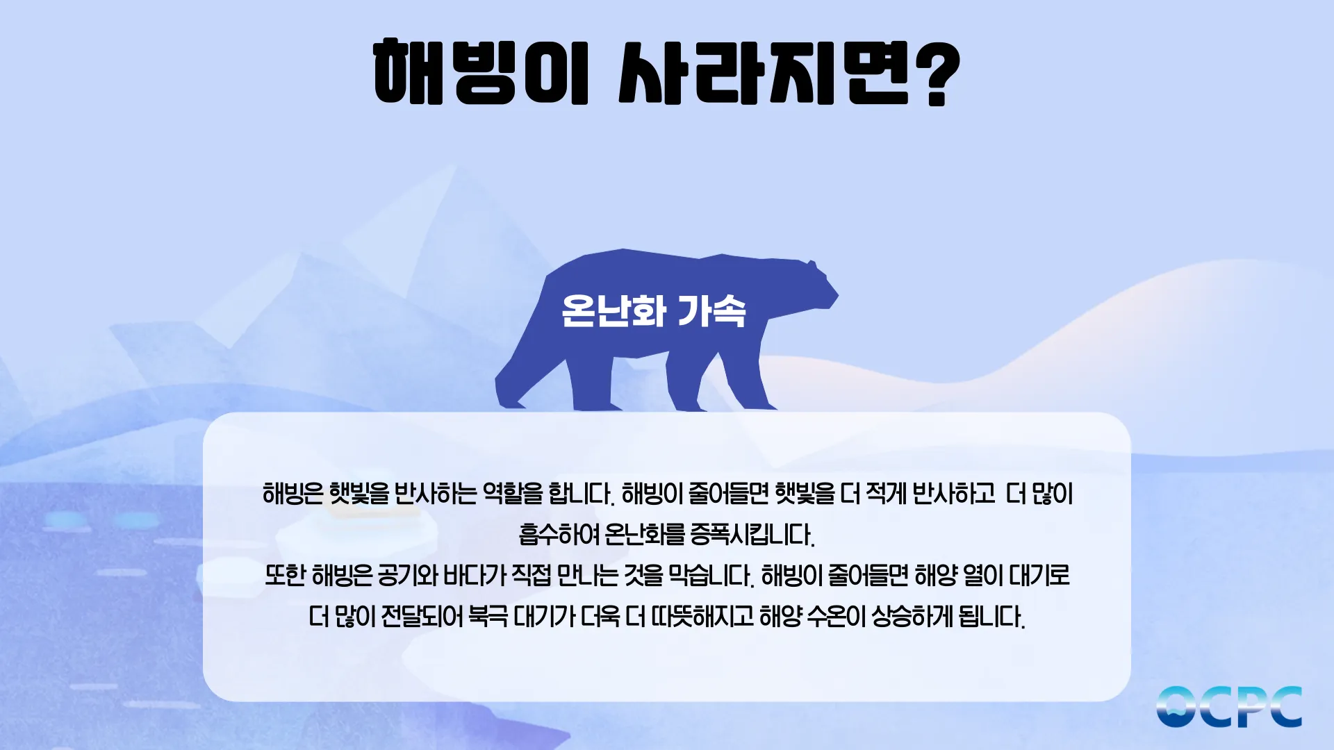 해빙이 감소하게 되면 지구의 기온이 올라가고 해수면도 상승하게 됩니다.