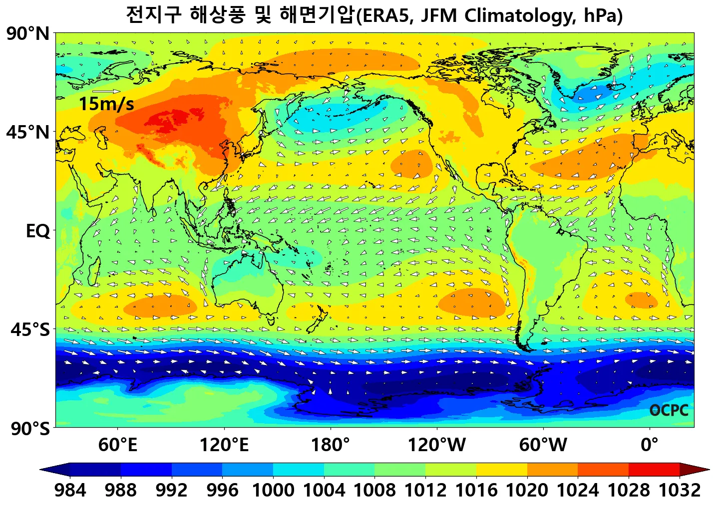 A. 전지구 해상풍 및 해면기압(평년 1월~3월 평균)