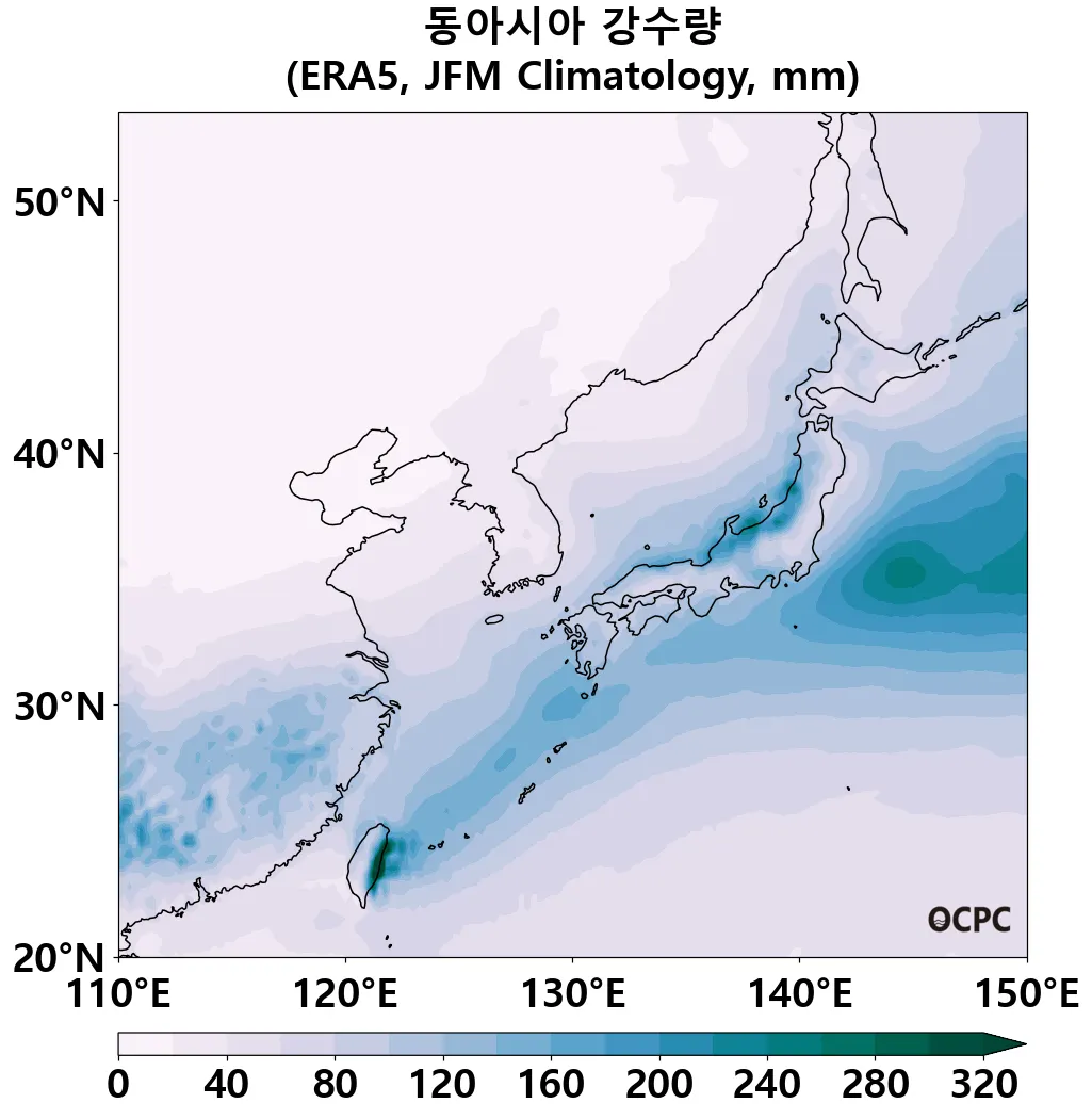 A. 동아시아 강수량(평년 1월~3월 평균)