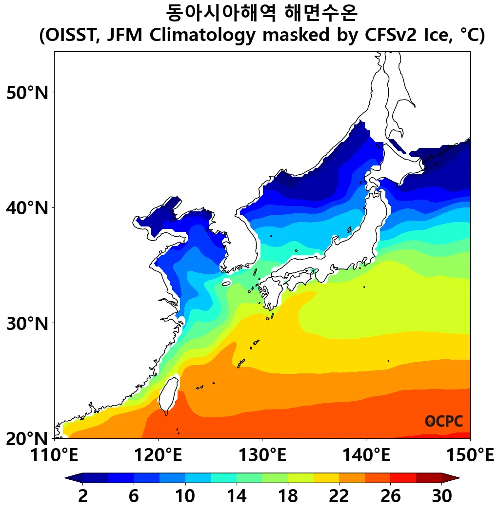 A. 동아시아해역 해상기온(평년 1월~3월 평균)