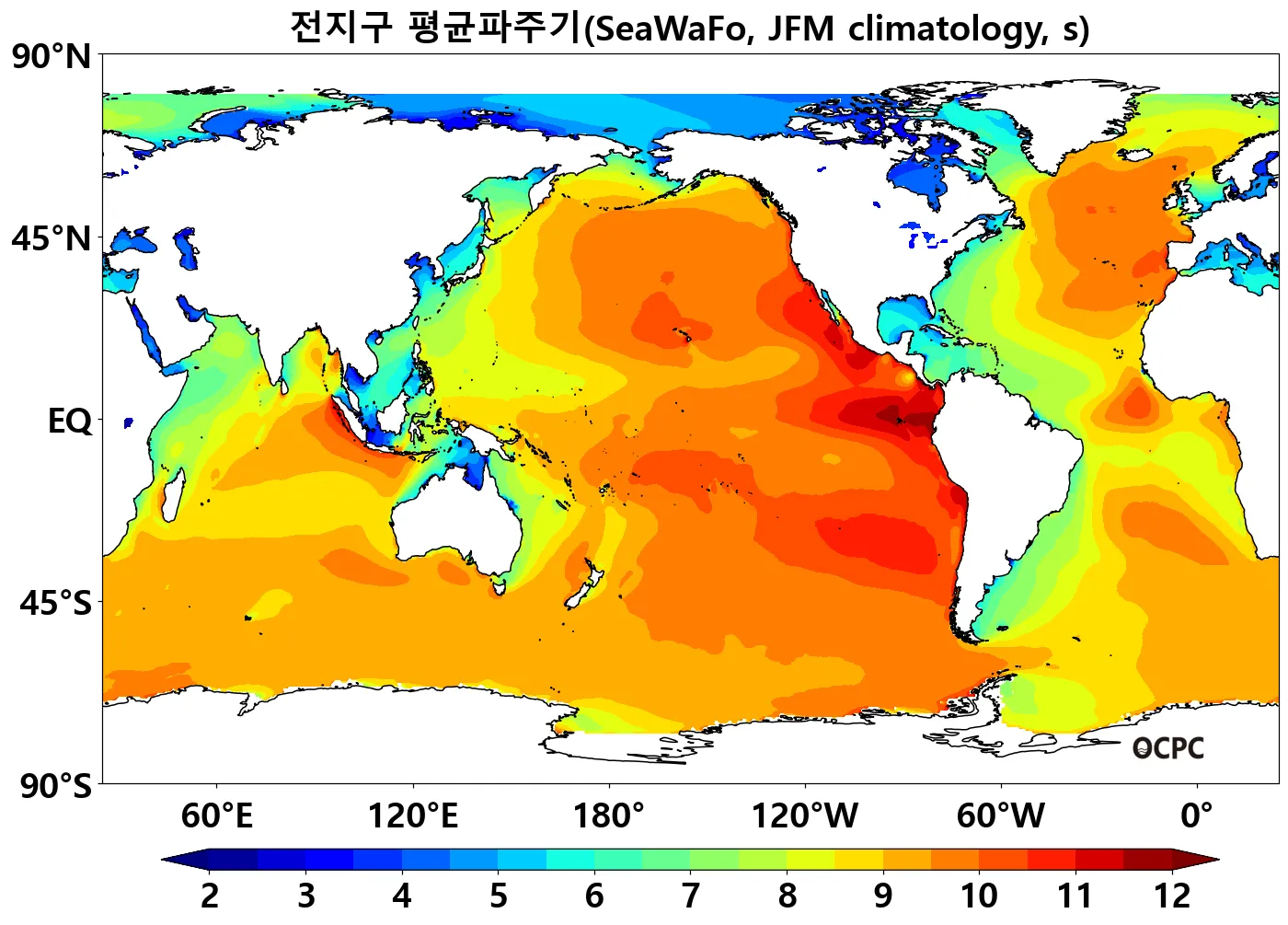 B. 전지구 평균파주기(평년 1월~3월 평균)