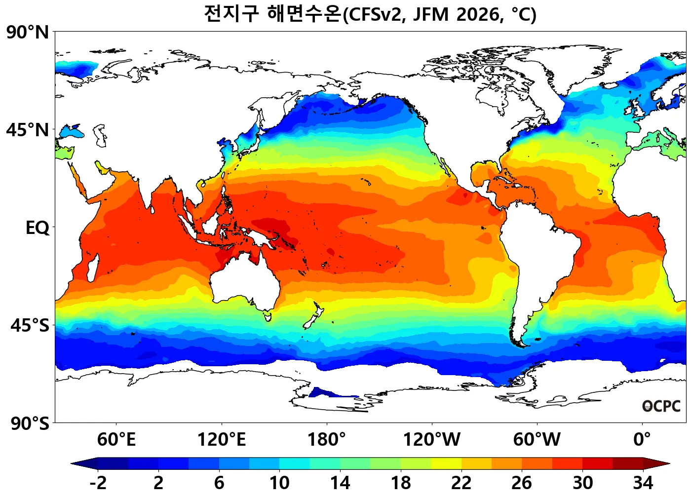A. 전지구 해면수온 전망(2026년 1월~3월 평균)
