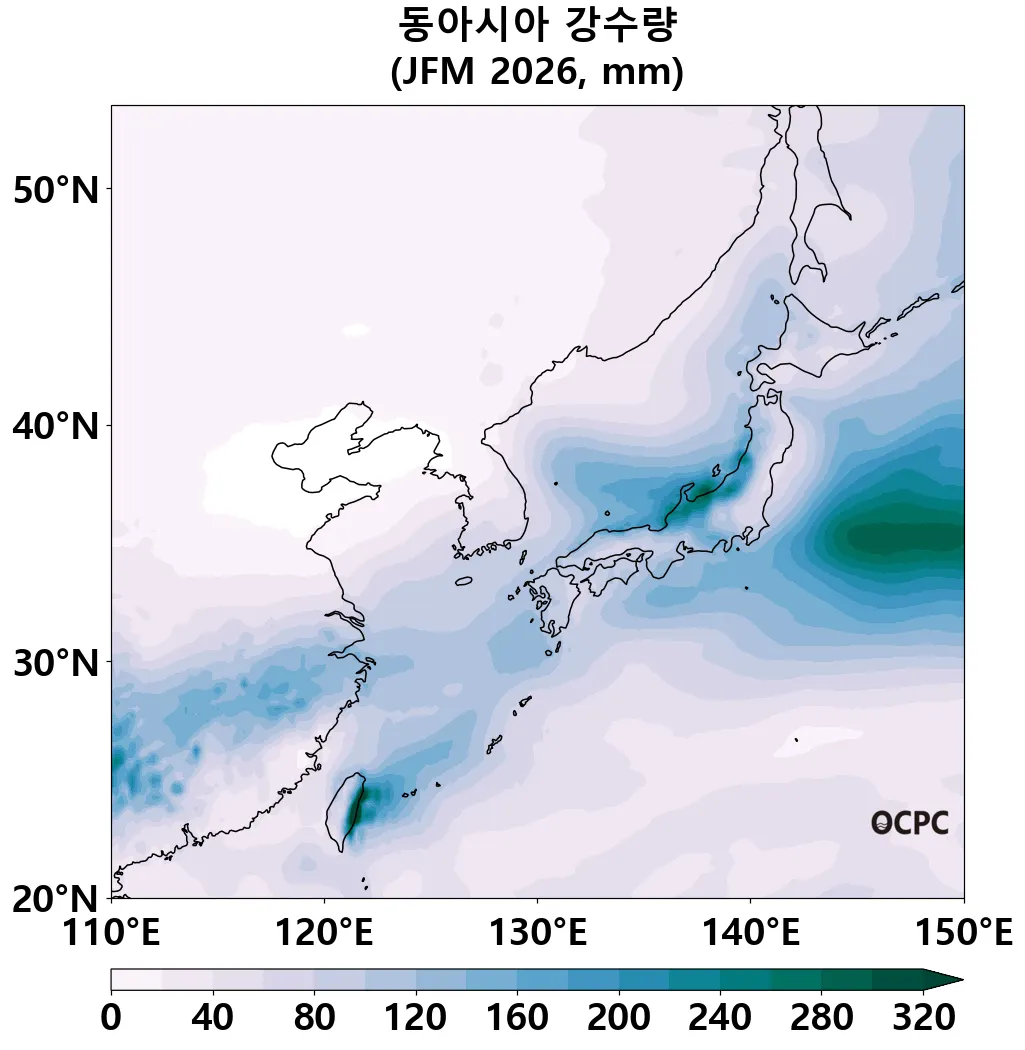 A+B. 동아시아 강수량 전망(2026년 1월~3월 평균)
