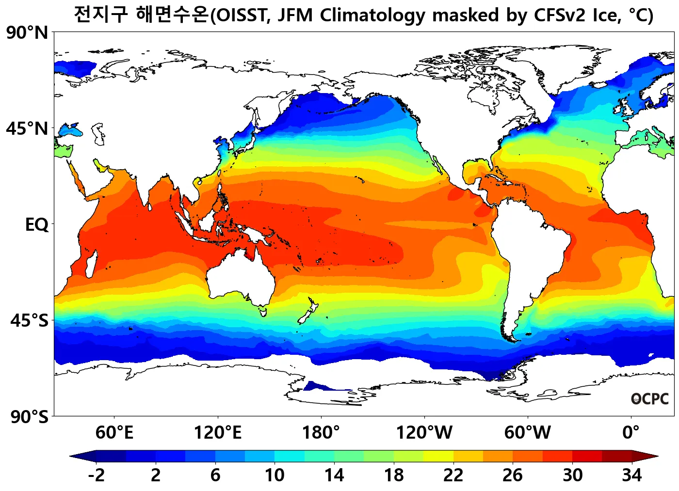 B. 전지구 해면수온(평년 1월~ 3월 평균), 예상 해빙 해역 제외