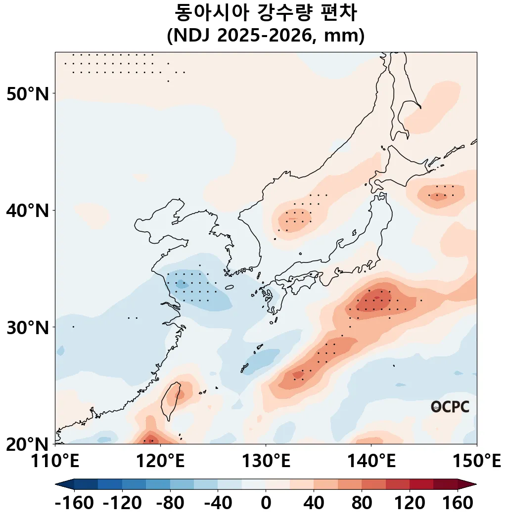 A+B. 동아시아 강수량 전망(2025년 11월~2026년 1월 평균)
