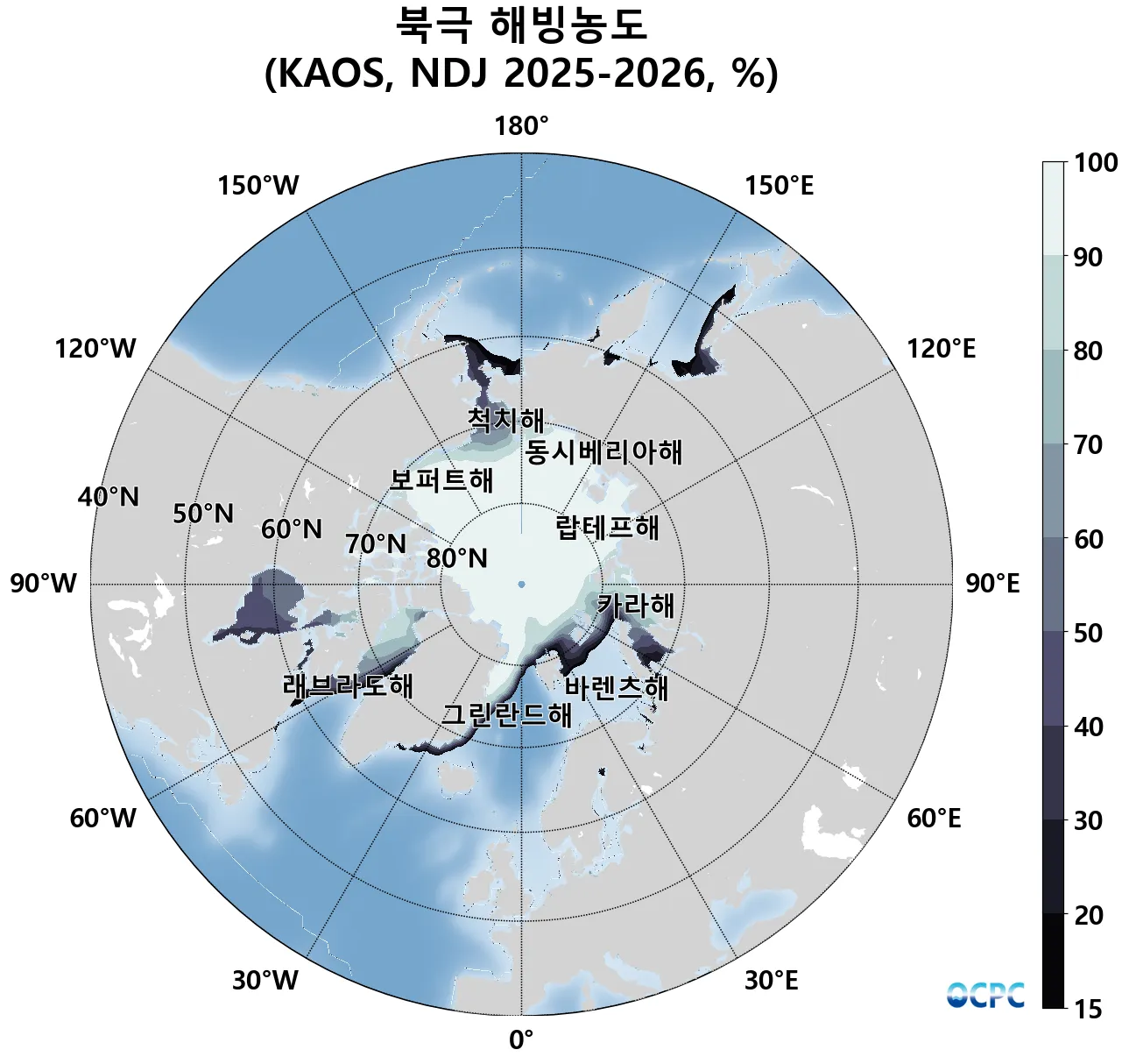 A. 북극 해빙농도 전망(2025년 11월~2026년 1월 평균, 15% 이상 해역)