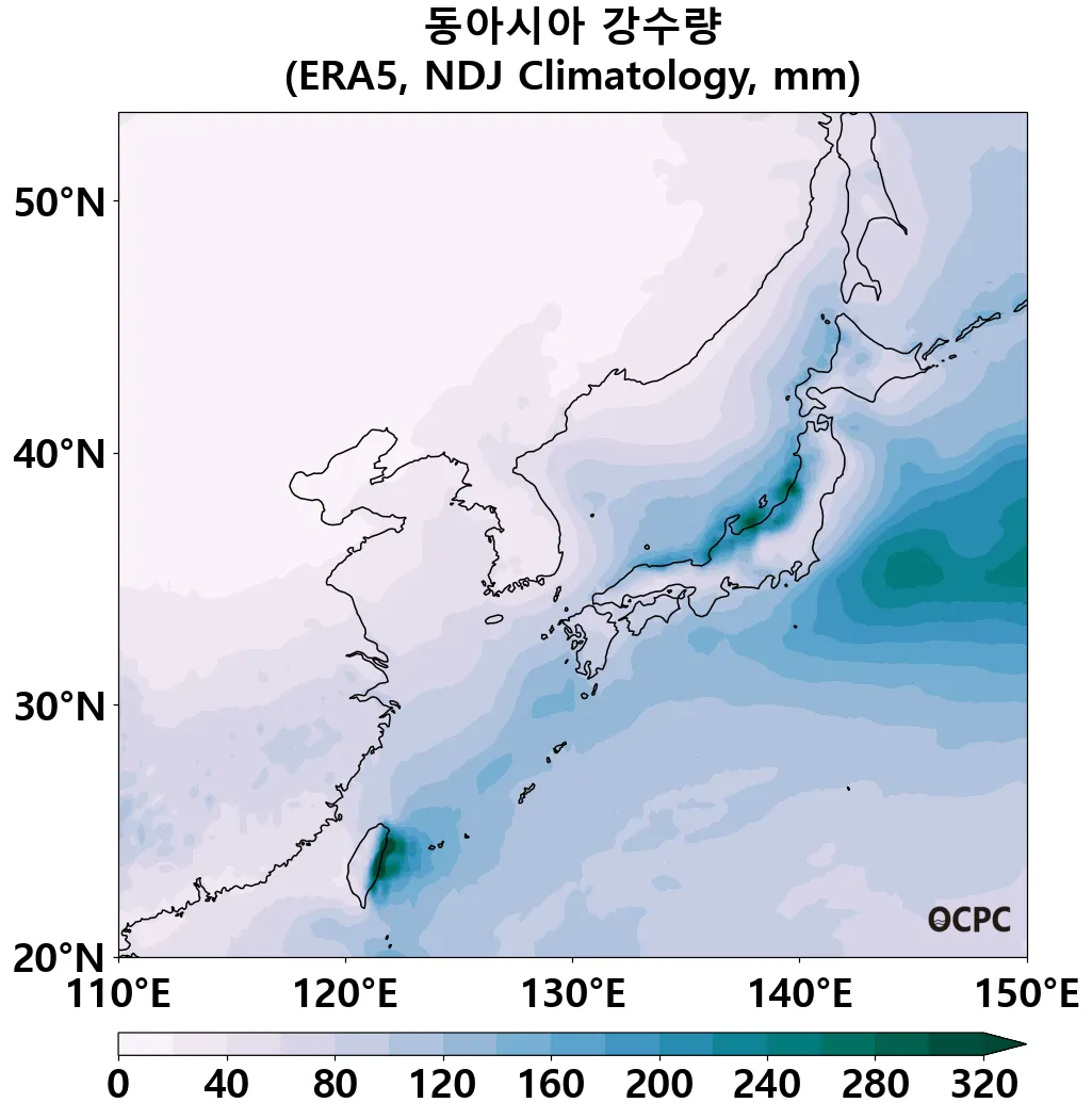 A. 동아시아 강수량(평년 11월~1월 평균)
