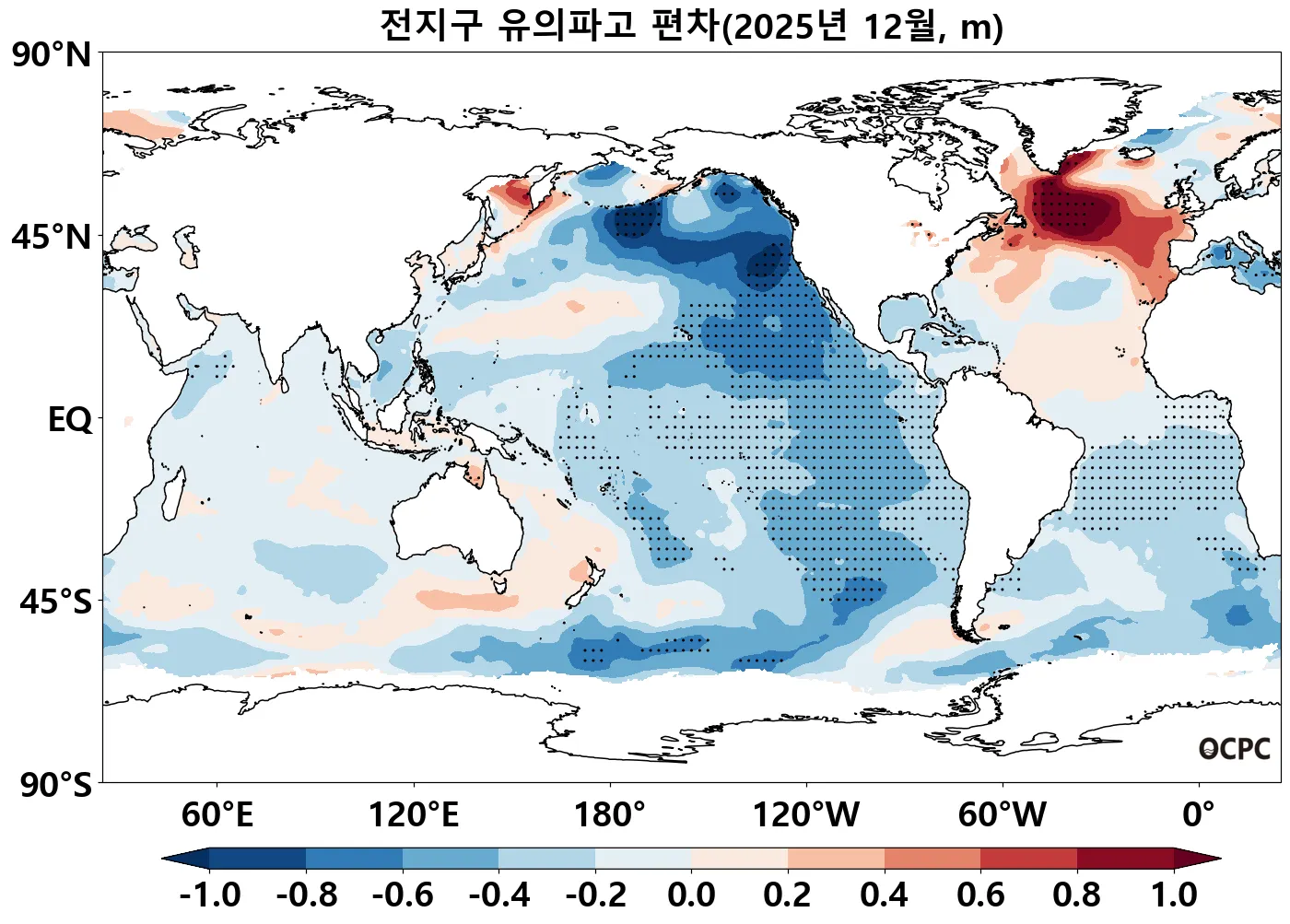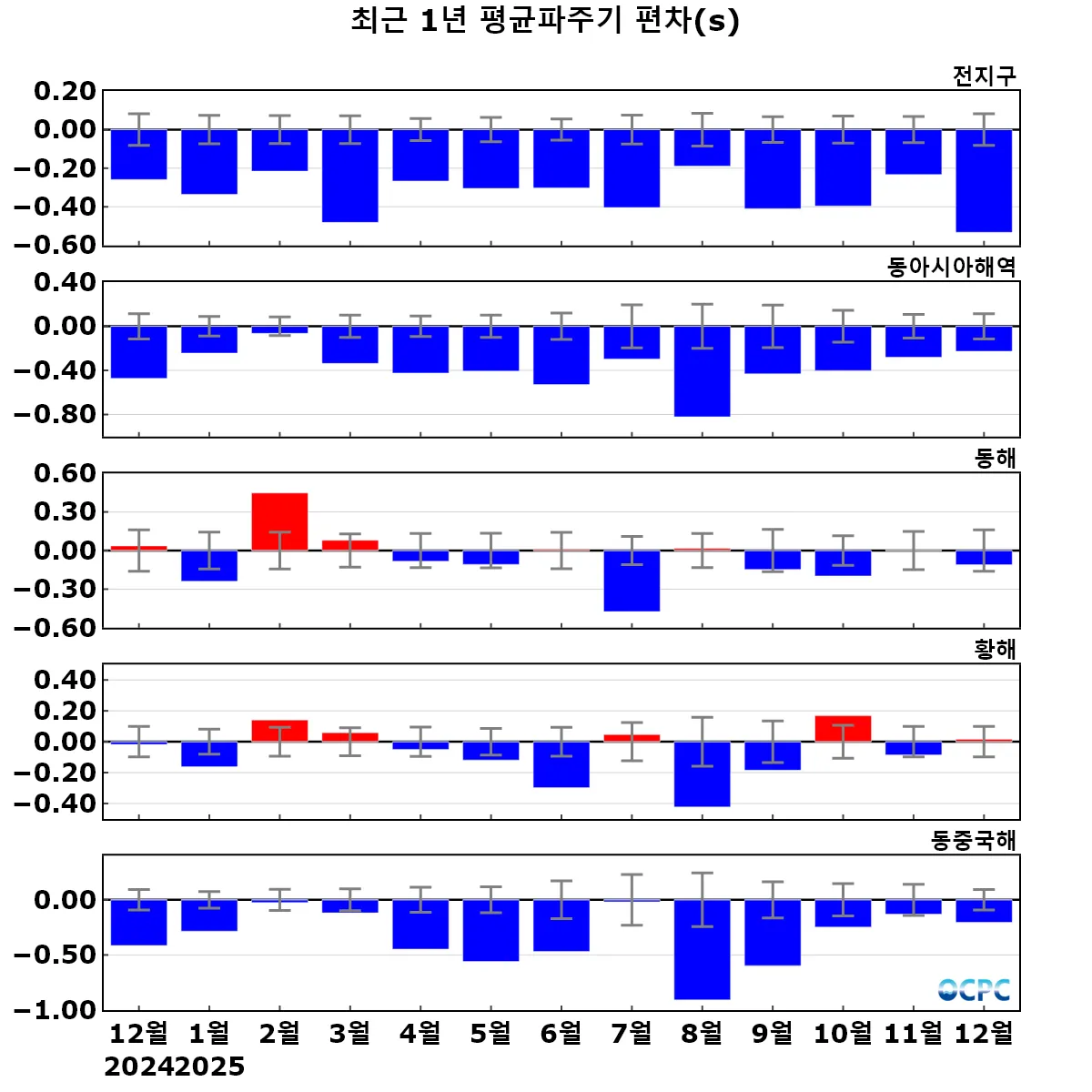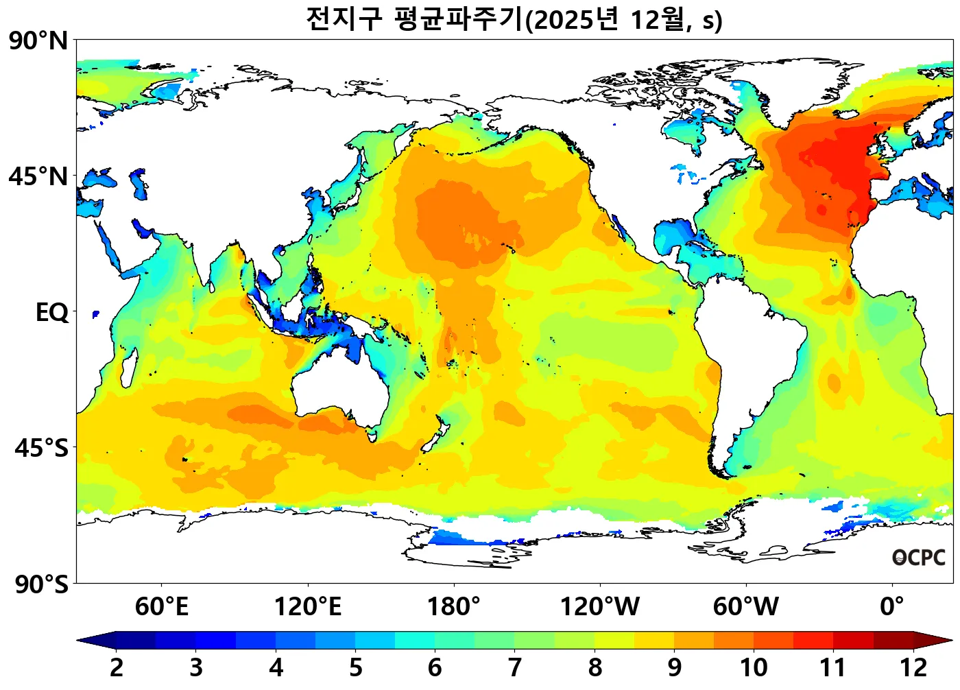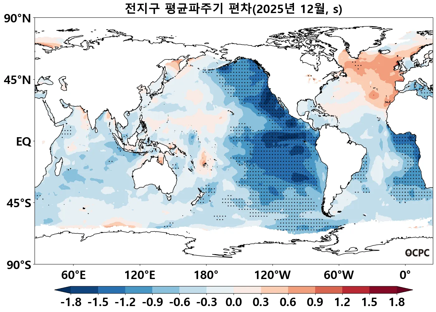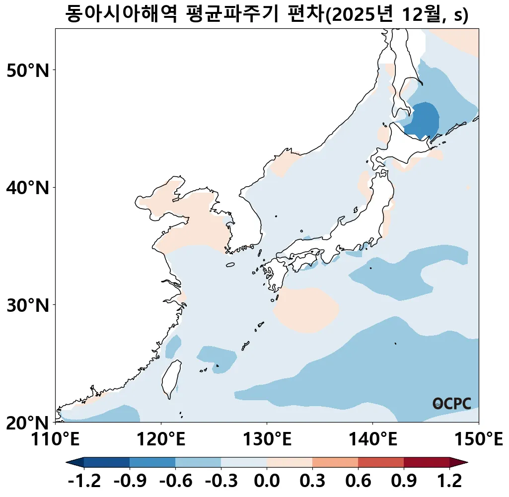 전지구 평균파주기는 평년(8.72±0.08초)보다 0.53초 감소했으며, 최근 30년 1995~2025년(12월) 중 가장 짧은 값을 기록했습니다.