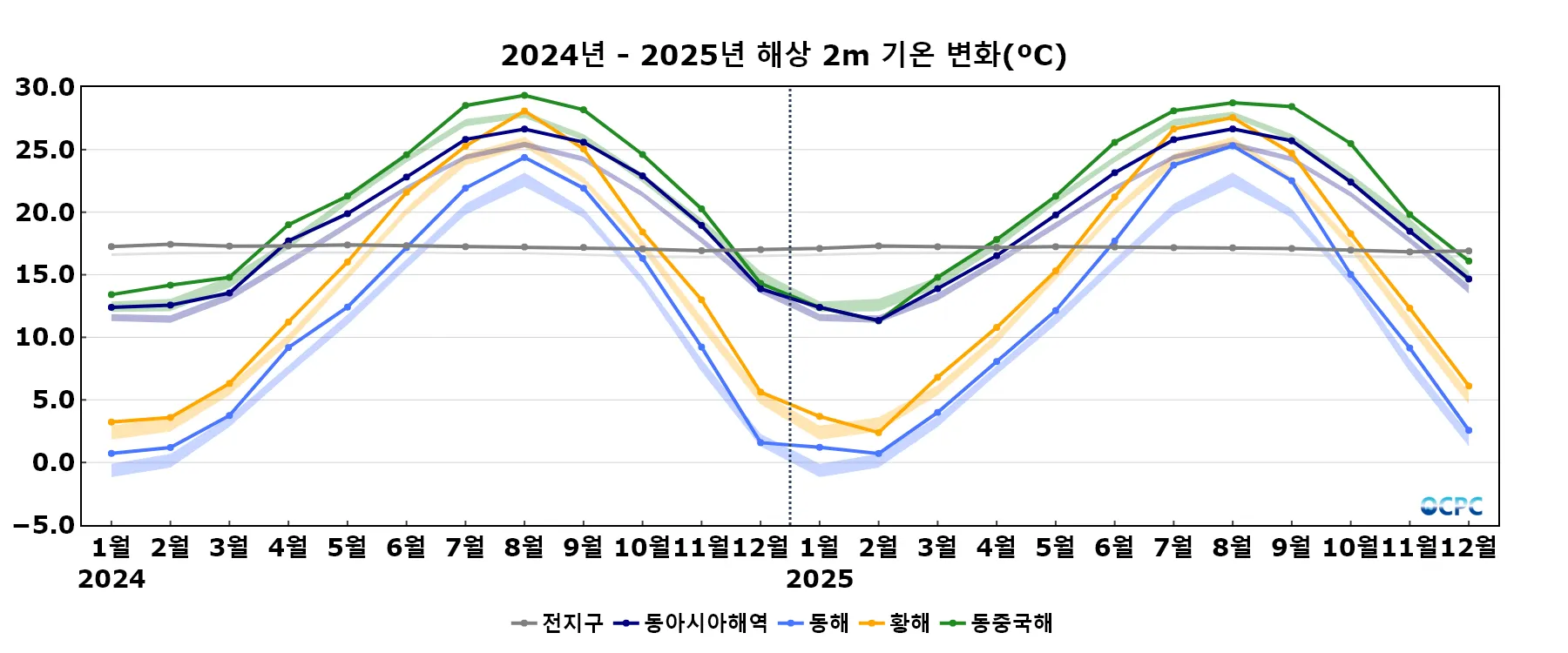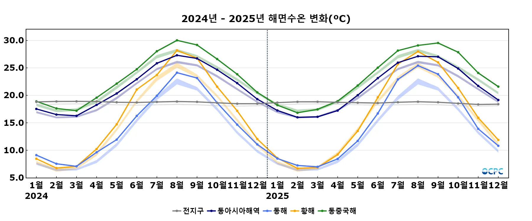음영표시: 평년구간(평년평균±0.5 표준편차)