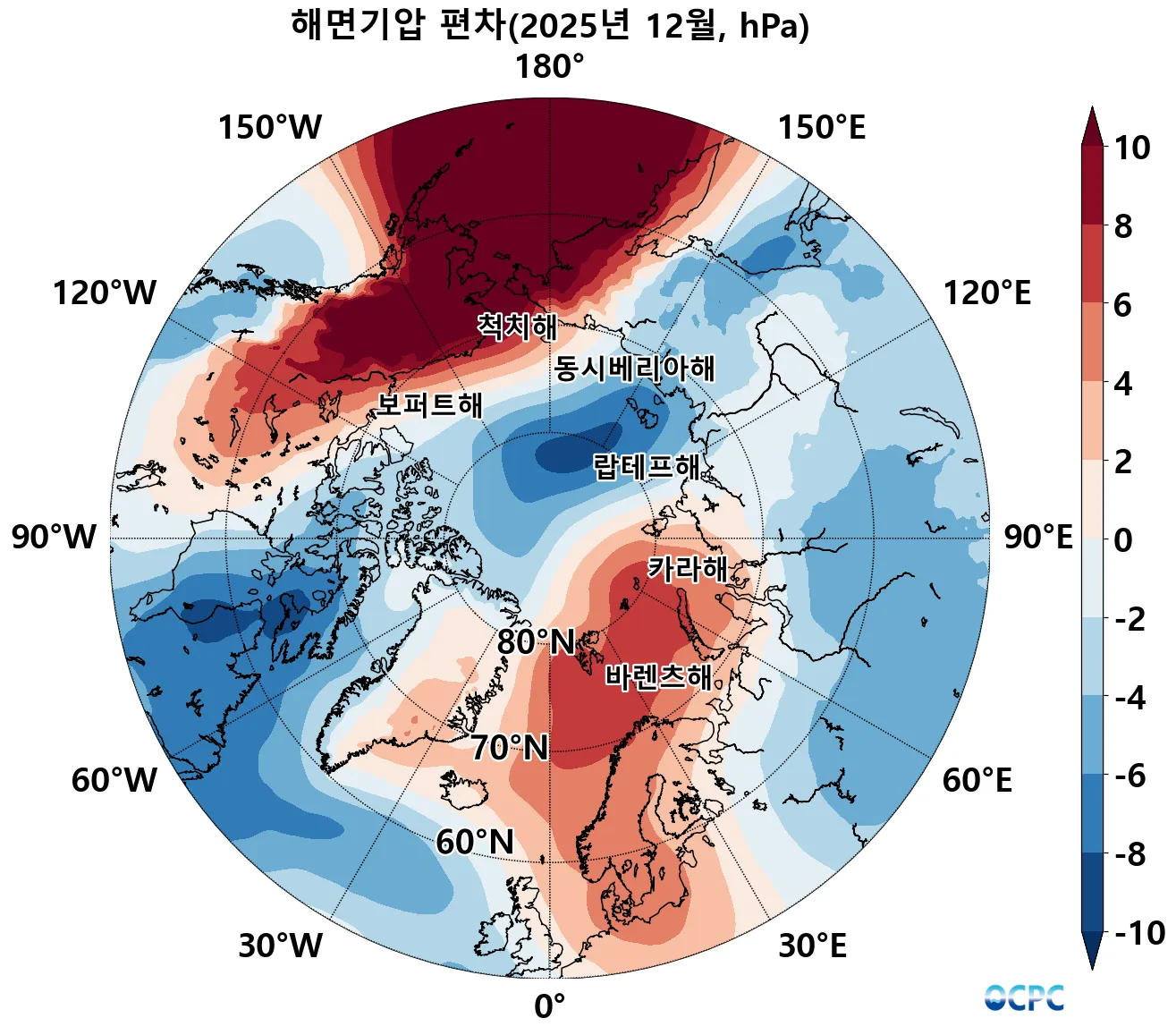 2025년 12월 북극 해면기압 편차