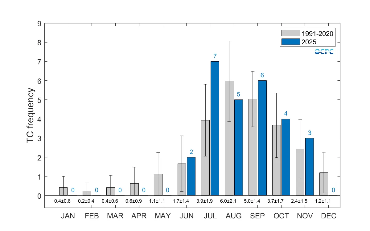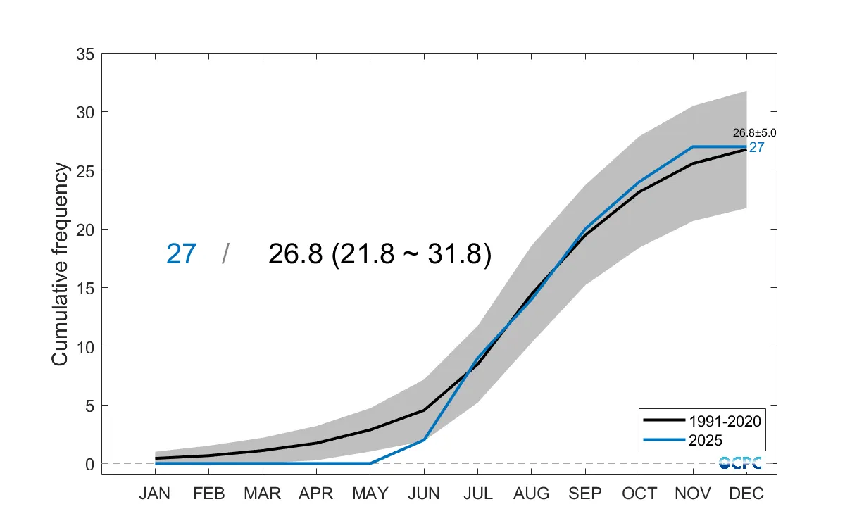 누적 발생수는 총 27개로 평년(약 21.8~31.8개)과 비슷합니다.