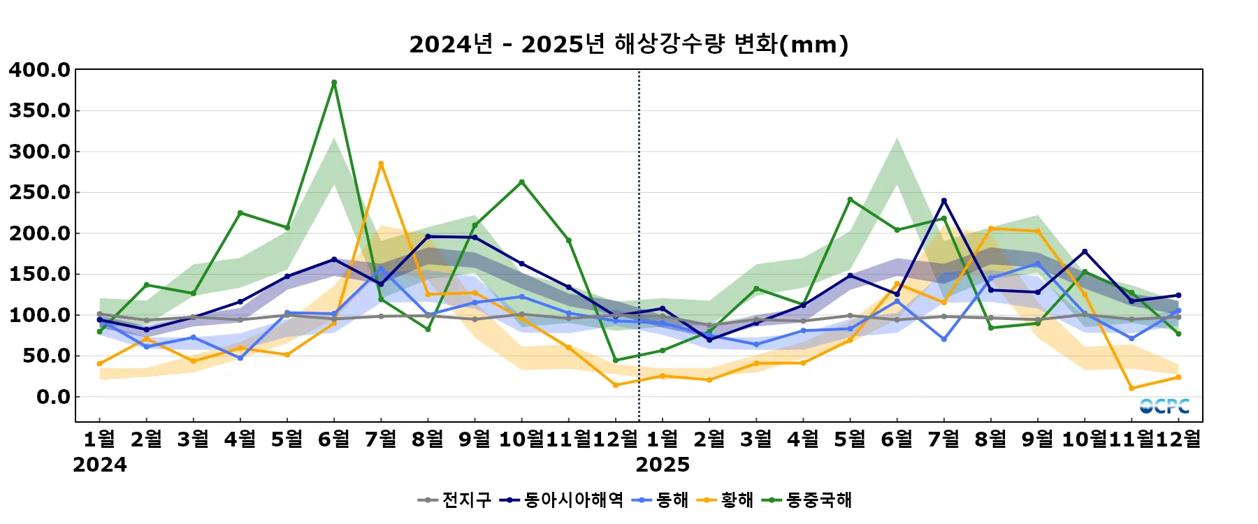 음영표시: 평년구간(평년평균±0.5표준편차)