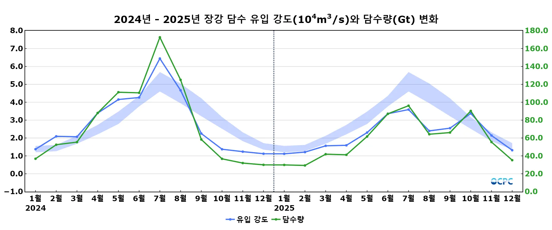 음영표시: 유입 강도 평년구간(평년평균±0.5 표준편차)
